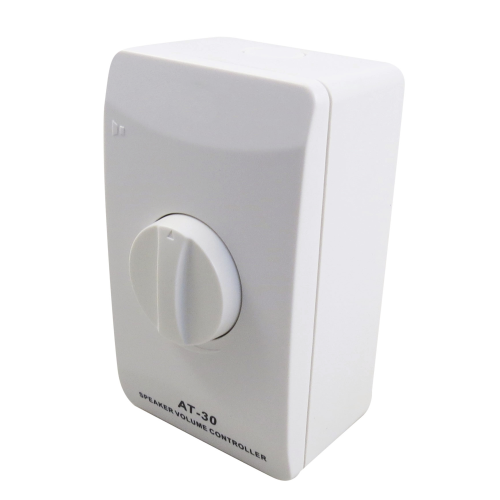 Attenuatore di volume per impianti a tensione costante. Opera infatti a 50V, 70V o 100V e possiede 11 posizioni (+off) per un controllo preciso del volume desiderato. La potenza massima gestibile è di 30W. Non da incasso ma utilizzo esterno a parete