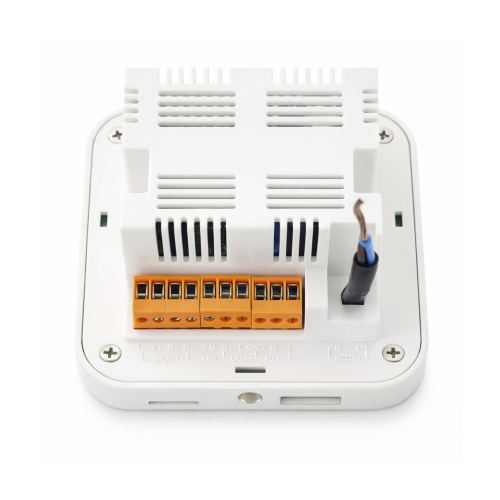 Piccolo amplificatore posizionabile a incasso completo di mascherina di fissaggio. E' possibile collegare 2 diffusori da 15W e una volta posizionato a parete avrete la possibilità di riprodurre brani MP3 da chiavette USB, schede micro SD ma anche tramite bluetooth. L'amplificatore è in grado di gestire un segnale di linea. E' dotato di telecomando ad infrarossi per il controllo a distanza. Ottimo per negozi, abitazioni e qualsiasi ambiente che necessiti di un amplificatore discreto ed elegante. Richiede scatola di plastica a muro mod. PA WALL BOX (fornita in dotazione). PIN BLUETOOTH: "1234" OPPURE "0000"