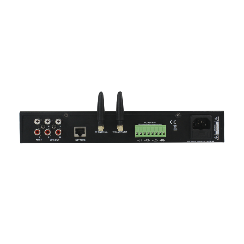 Apparecchio in grado di amplificare 4 diffusori da 60W a 8 Ohm. E' possibile collegare un supporto di memoria USB per riprodurne le tracce Mp3. Ma la sua particolarità è il fatto di potersi connettere alla rete internet per essere poi controllato dalla sua applicazione gratuita. L'applicazione gestisce numerosi software musicali quali ad esempio spotify. Collegando sulla stessa rete più amplificatori potrete ottenere un vero impianto audio multiroom.
