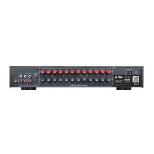 Amplificatore stereofonico in grado di gestire 6 zone stereofoniche quindi 12 altoparlanti operanti a 4-8-16 Ohm. Frontalmente presenta 2 prese microfoniche, una presa USB in grado di riprodurre file di altissima qualità in formato APE/FLAC/MMA e Mp3 Sul fronte sono presenti i tasti dove selezionare sia la sorgente che le zone dove attivare o disattivare l'audio. Le prese microfoniche hanno la funzione eco e controllo dei toni Non manca la ricevente bluetooth. Sul retro è presente : una presa ottica toslink e coassiale, 2 ingressi di linea e un'uscita audio (tramite RCA).