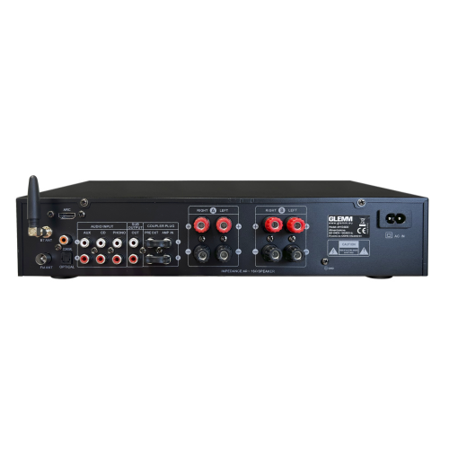 Amplificatore stereofonico in grado di gestire 4 diffusori su 2 canali fornendo prestazioni straordinarie anche con funzione BT Opera a 4-16 Ohm con una ottima qualità grazie al processore DSP, al DAC digitale e alla tecnologia di processo audio ACD che garantisce una acustica fedele degna di un impianto HiFi. Sulla parte frontale sono presenti 2 prese microfoniche , presa cuffia 3,5mm e una presa USB/DAC con MP3 Sul retro 3 ingressi di linea (Phono : non è preamplificato con valori standard quindi occore un CVS 908) 1 presa ottica, 1 coassiale e una HDMI ARC per il collegamento a TV. Tra le uscite troverete anche una uscita destinata a subwoofer amplificati. Viene fornito con telecomando, antenna BT e FM