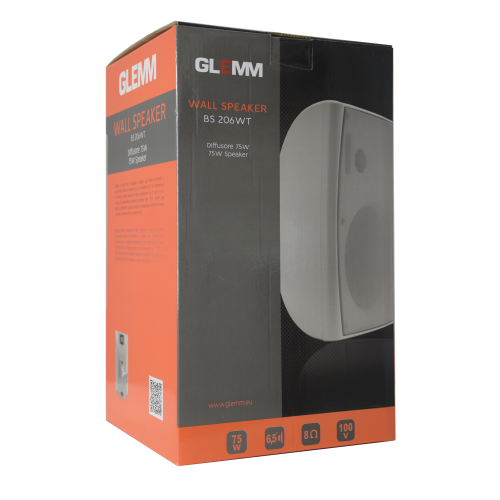 Dotato di staffa per il fissaggio a parete, può essere orientato a piacimento. Monta un woofer da 6,5" e un tweeter da 1" che consentono di ottenere ottime prestazioni nella riproduzione sia di voce che di musica. Di colore bianco, dispone di selettore 100V - OFF - 8 Ohm. Dal design accattivante, si presta all'utilizzo in qualunque ambiente sia esso una sala conferenze che una palestra etc.