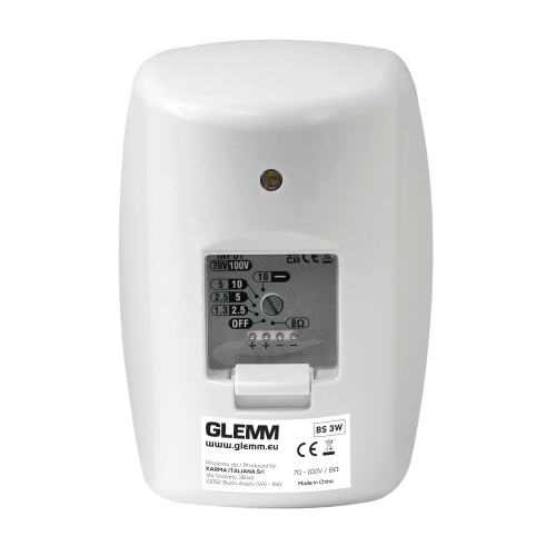 Coppia di casse bianche di elevata qualità si distinguono per la compattezza e l'ottima resa acustica. La confezione comprende 2 diffusori completi di staffa snodata per fissaggio a parete. La potenza massima è di 40W (8 Ohm). Se collegata ad impianti a tensione costante (70/100V) la potenza massima selezionabile sarà di 5, 10 o 20W (100V). Ideale per qualsiasi tipo di impiego, dall'abitazione al negozio