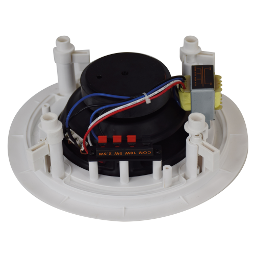 Diffusore da incasso per il posizionamento in pannelli e controsoffitti. Dispone di un woofer da 6,5" e di un tweeter da 1" che gli consentono di ottenere una buona resa nella riproduzione di ogni tipo di suono, sia esso musica o voce. La bordatura gommata del woofer ne garantisce la qualità e l'assenza di distorsione anche ai massimi volumi. Il design moderno ne permette il posizionamento in qualunque ambiente. La potenza è settabile su 5W, 10W o 20W ed è utilizzabile in impianti a 100V.