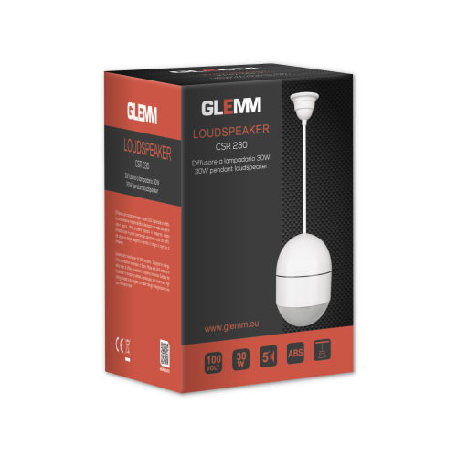 Diffusore con trasformatore per impianti 100V. Applicabile a soffitto. Ha un'estensione massima di 65cm con il gancio (58cm senza) Di colore bianco, offre un'ottima risposta in frequenza. Asta cm 26. Diffusore 24 cm diametro 18 cm