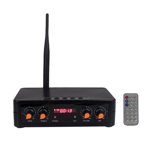 Trasmettitore in grado di funzionare in abbinamento a diffusori FRD SPK1, FRD SPK2 e FRD SPK3. Si abbina ai diffusori in pochi secondi ed è subito in grado di inviare musica proveniente da chiavette USB, Bluetooth, radio FM o da un microfono/segnale di linea esterno. E' alimentato da un piccolo trasformatore e dotato di telecomando per il controllo a distanza. Alzando il volume, si aumenterà contemporaneamente il volume di tutti i diffusori collegati rendendo estremamente facile l'utilizzo in ogni contesto.