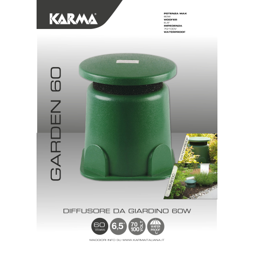 Espressamente progettato per la diffusione sonora in giardini, parchi etc. E' possibile appoggiarlo o interrarlo lasciando visibile la sola parte superiore. Grazie alla sua forma, il diffusore interno beneficerà della camera di risonanza offrendo un suono bilanciato e cristallino. La potenza massima di 60W lo rende perfetto per musica di sottofondo. Opera a 70-100V ed incorpora un woofer da 6,5" In colore verde per la massima mimetizzazione in prati. Grado di impermeabilità: IP55