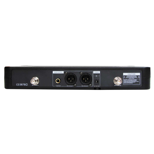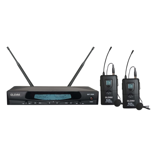 Radiomicrofono professionale UHF comprensivo di base ricevente e doppio microfono trasmittente di tipo lavalier. Il display mostra tutte le informazioni. 100 canali disponibili, l'accoppiamento di frequenza avviene in pochi istanti tramite sensore a infrarossi. Il radiomicrofono opera in banda UHF con particolari filtri che eliminano interferenze. Anche i microfoni sono provvisti di display dai quali si possono visualizzare varie informazioni come ad esempio il livello di carica delle 2 batterie da 1,5V interne. Range operativo freq.640,00 - 689,75 Mhz