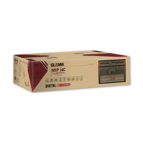 Alimentato a 110/220V e ideato per essere appoggiato, questo mixer audio consente il collegamento di ben 12 segnali mono (sia di linea che microfonici) e un segnale di linea stereofonico. I 12 canali sono gestiti da connettori XLR/6,3mm e ogni canale possiede numerose regolazioni per guadagno, tonalità, incidenza effetto e bilanciamento canale. Nel caso di collegamento microfoni a condensatore, è possibile attivare l'alimentazione phantom. Un sofisticato modulo multimediale è in grado di leggere brani da chiavette USB o tramite bluetooth. E' possibile registrare su porta USB ma anche collegare il mixer al PC sempre tramite tale porta per poter scambiare audio tra i due device. Il circuito DSP, con campionamento a 32bit, gestisce effetti abbinabili ai canali. Completa il mixer un equalizzatore grafico a 5 bande.
