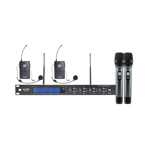 Radiomicrofono professionale .Eccezionale per tutti i casi in cui si vogliano utilizzare fino a 4 microfoni wireless. La confezione comprende una base ricevente e 4 radiomicrofoni (2 palmari e due bodypack con archetto) . Il sistema è operativo in un raggio di circa 50mt. I connettori posteriori permettono di collegare la base ad un impianto di amplificazione. Il sistema è multifrequenza. I range di frequenza sui 4 canali sono i seguenti: (distanza tra un canale e l'altro 0,250 Mhz). Frequenze operative: 1) 640.00 - 664.750 Mhz 2) 665,00 - 689.750 Mhz 3) 640.00 - 664.750 Mhz 4) 665.00 - 689.750 Mhz