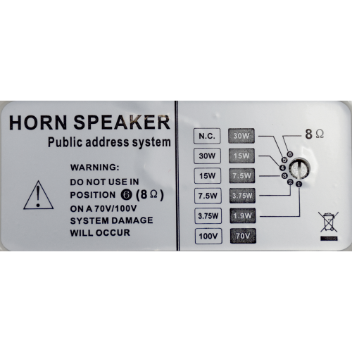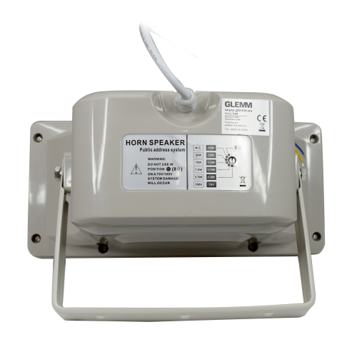 Tromba impermeabile ideata per la diffusione anche all'aperto di musica e voce. Opera ad impedenza e a tensione costante ed è realizzata in ABS con trattamento anti UV e griglia metallica frontale. La potenza massima è di 60W ed è suggerita per l'impiego in scuole, aereoporti, uffici etc. Dotata di regolatore di potenza sul retro IP 66